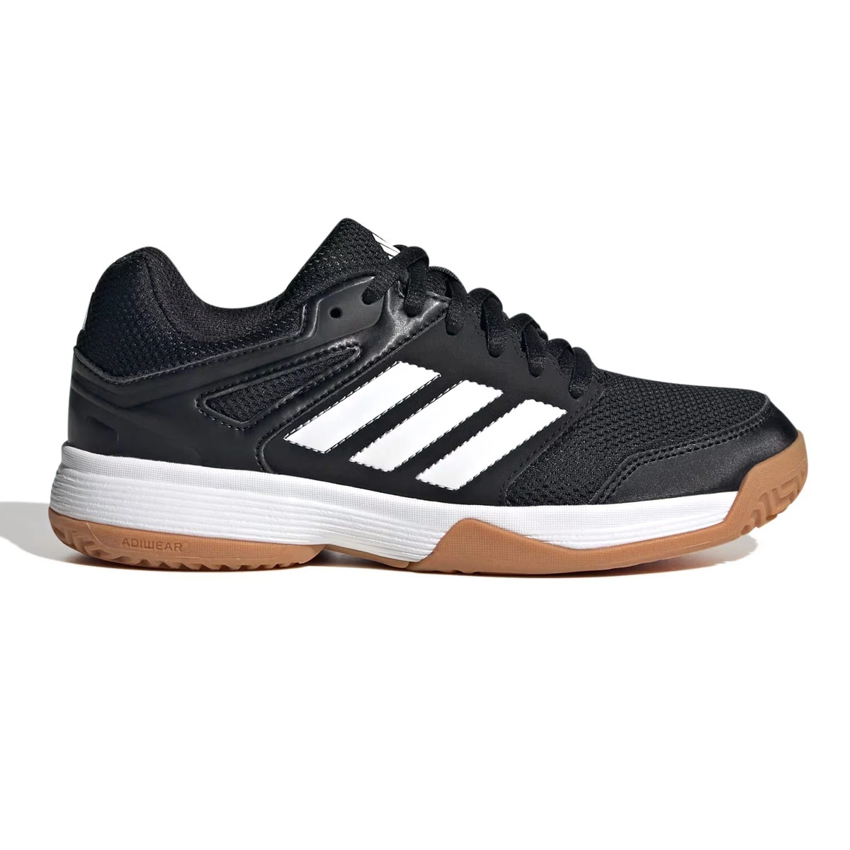 Adidas Speedcourt Court Shoes are a comfortable court shoe with increased breathability due to the airmesh in the upper. Made to cope with a multitude of indoor court sports it is a little faster and provides more grip for badminton/squash/handball/hockey/volleyball. adiWear – Abrasion resistant rubber placed in the medial forefoot protect from drag damage. Non-Marking Gum Rubber – Soft gum rubber outsoles give excellent grip indoor. Soft to touch but hard wearing it gives a good balance of high grip and durability.