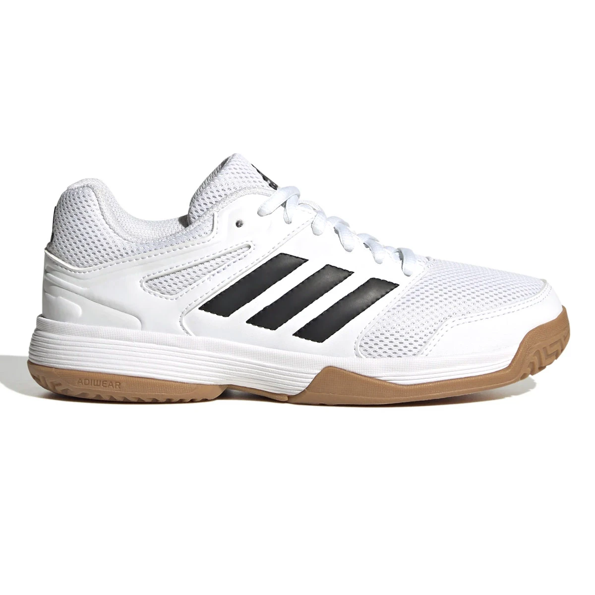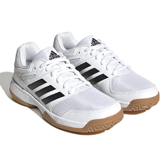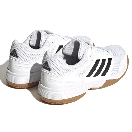 Adidas Speedcourt Court Shoes are a comfortable court shoe with increased breathability due to the airmesh in the upper. Made to cope with a multitude of indoor court sports it is a little faster and provides more grip for badminton/squash/handball/hockey/volleyball. adiWear – Abrasion resistant rubber placed in the medial forefoot protect from drag damage. Non-Marking Gum Rubber – Soft gum rubber outsoles give excellent grip indoor. Soft to touch but hard wearing it gives a good balance of high grip and durability.