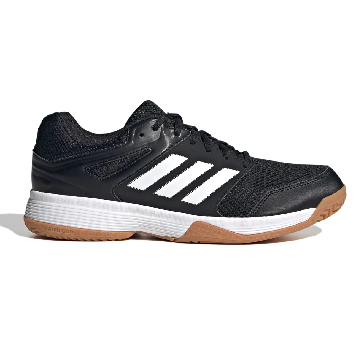 Adidas Speedcourt Court Shoes are a comfortable court shoe with increased breathability due to the airmesh in the upper. Made to cope with a multitude of indoor court sports it is a little faster and provides more grip for badminton/squash/handball/hockey/volleyball. adiWear – Abrasion resistant rubber placed in the medial forefoot protect from drag damage. Non-Marking Gum Rubber – Soft gum rubber outsoles give excellent grip indoor. Soft to touch but hard wearing it gives a good balance of high grip and durability.