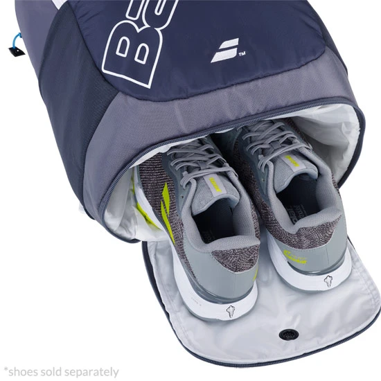 It’s versatile with 2 compartments where you can store and protect up to 2 racquets on one side, and organise all your equipment on the other. There’s also a special shoe compartment. The accessories pockets open up easy access to your things on court.