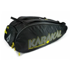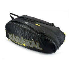 Karakal Pro Tour Competition 9 Racket Bag Is a large capacity racket bag for a travelling player. The bag offers a good amount of racket storage for taking multiple rackets and spares. It stands apart from the competition by offering many pockets to allow storage for clothing changes, showers, ventilation of wet clothes and shoes.