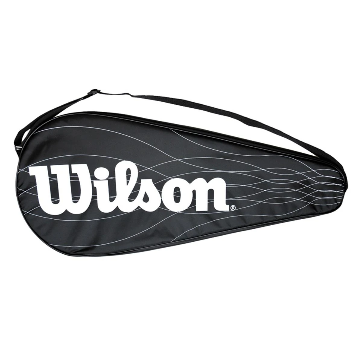 Wilson performance racket cover fits all senior rackets. Cover helps protect racket and features a shoulder strap.